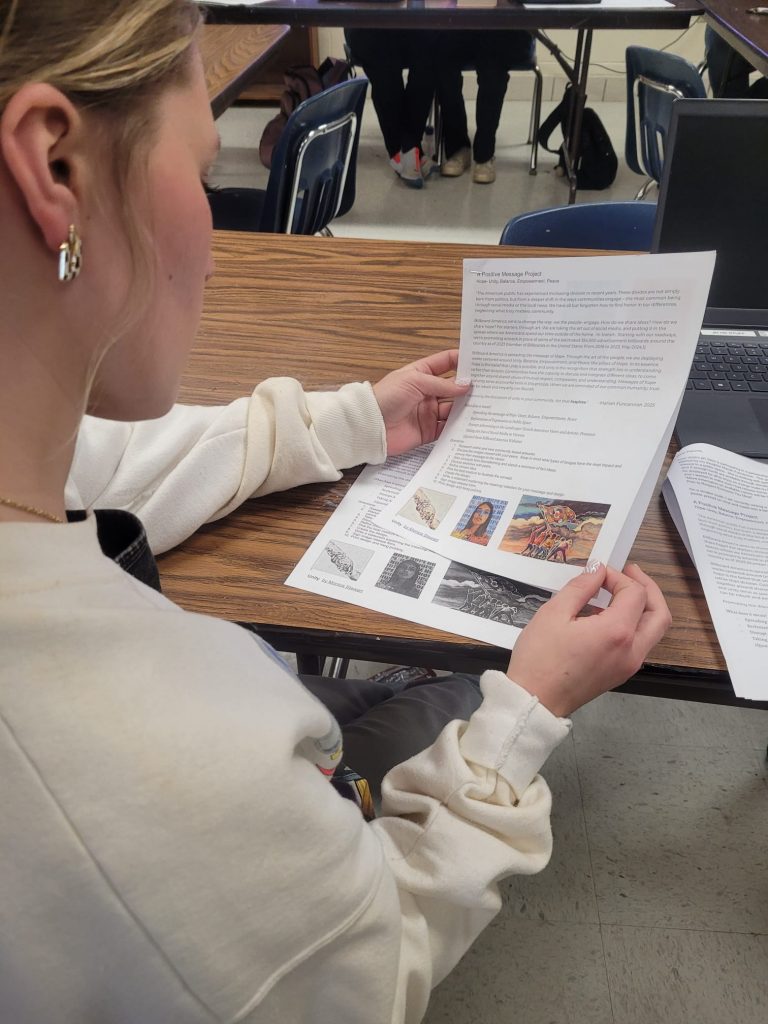 “I wanted to get her class involved, to see their art displaying Billboard America’s message of Hope through Unity, Balance, Empowerment, and Peace. The project outline was still in its infancy, and she knew how to help hone it.”
